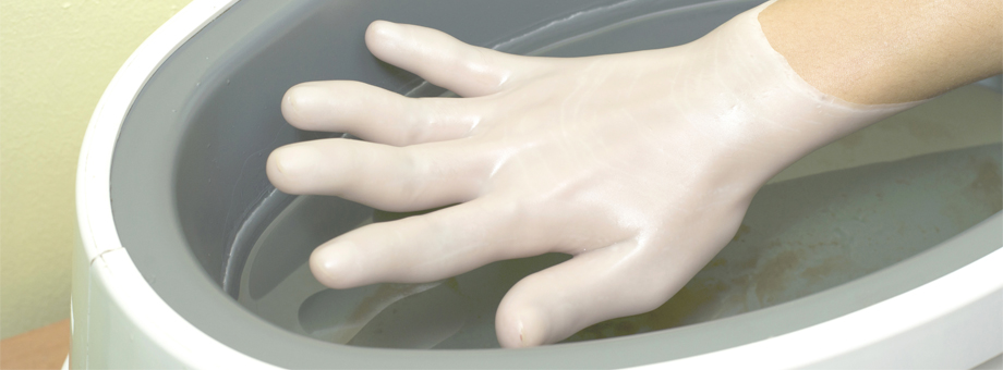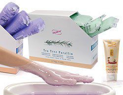 Парафинотерапия глубоко увлажняет и эффективно смягчает кожу, нежные запахи добавок, таких как лаванда, чайное дерево, апельсин и т.д., выступают элементами ароматерапии и помогают избавиться от усталости. Руки и стопы несколько раз погружаются в разогретый парафин, затем на них надеваются защищающие пакеты и термоварежки или термоноски. Сеанс всегда предваряет пилинг, нанесение антисептического средства и специально созданной для данной процедуры косметики.