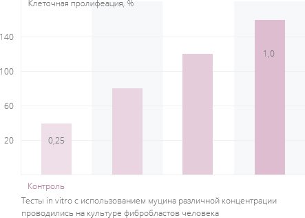Проведенными исследованиями доказано, что присутствие муцина в коже человека положительно влияет на пролиферацию фибробластов.