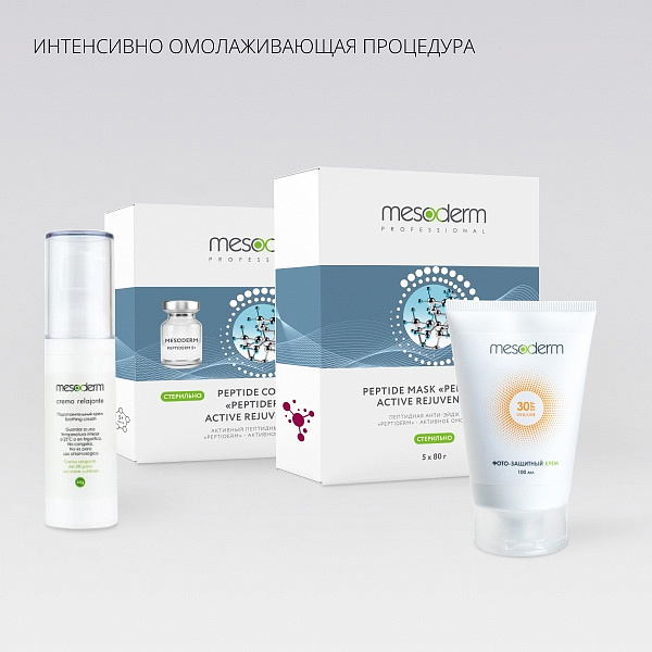 Пакет профессиональных препаратов в соответствии с протоколом интенсивного омоложения Mesoderm. Включает базовый пептидный мезококтейль и дополнительные продукты для проведения комплексной процедуры.
