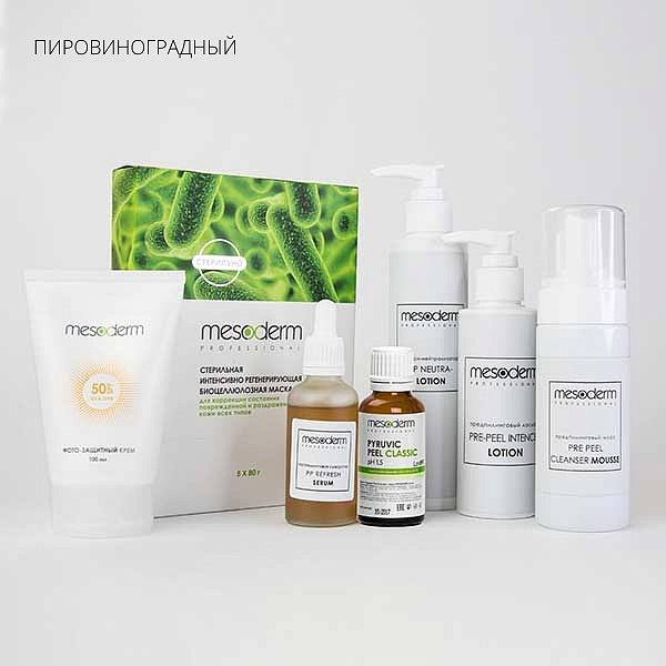 Комплекс препаратов для проведения профессиональной лифтинговой процедуры по протоколу Mesoderm. Включает в себя стерильную пептидную мезосыворотку, а также продукты для подготовительного и завершающего этапов.