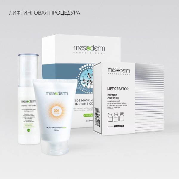 Комплекс препаратов для проведения профессиональной лифтинговой процедуры по протоколу Mesoderm. Включает в себя стерильную пептидную мезосыворотку, а также продукты для подготовительного и завершающего этапов.