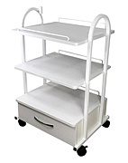 • Так как тележка для косметолога может использоваться в качестве подставки под аппараты, она должна быть устойчивой и прочной.