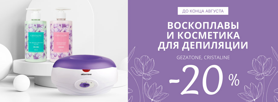 Скидка 20% до конца августа! Успевайте приобрести по специальным ценам великолепные воскоплавы Gezatone и косметику для депиляции Cristaline.