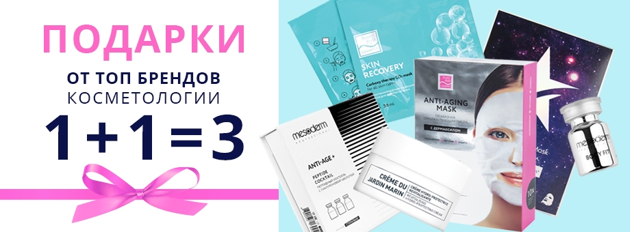При покупке двух продуктов из списка — забирайте третий В ПОДАРОК! Всего несколько дней максимальной выгоды на лучшие предложения и хиты продаж от Mesoderm, Algologie, Beauty Style.