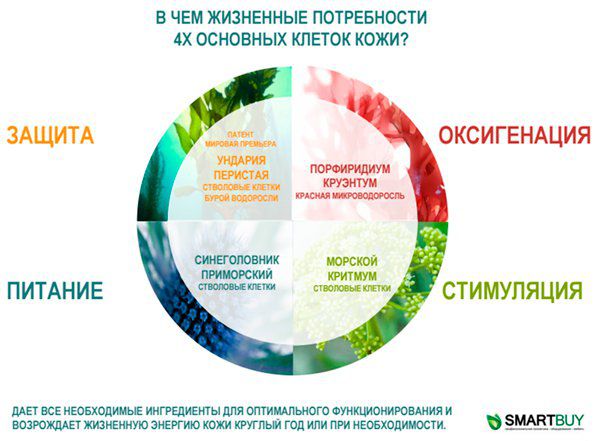 • Стволовые клетки бурой водоросли ундарии перистой – осуществляют глобальную антиоксидантную защиту для всех жизненно важных структур, включая ДНК.