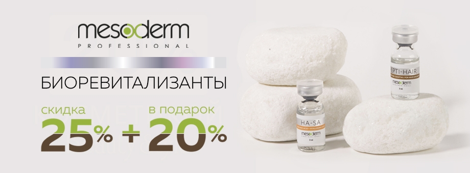 Биоревитализанты MESODERM со скидкой 25% + 20% от заказа в подарок!
