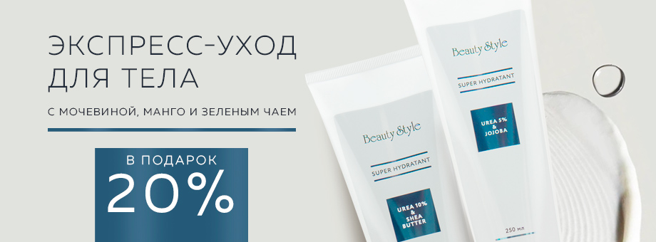Глубокое очищение, суперувлажнение, восстановление и детокс. Выбирайте в подарок вкусные средства СПА серии или серии с мочевиной Beauty Style на сумму 20% от вашего заказа.