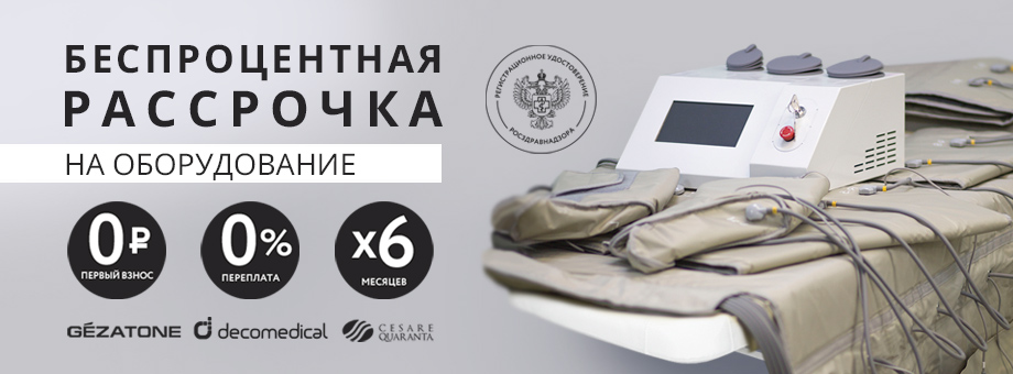 Лучшие аппараты для самых востребованных процедур омоложения лица и коррекции фигуры от GEZATONE (Франция), DECOMEDICAL и CESARE QUARANTA (Италия) теперь легко получить без первоначального взноса и переплаты. Начинайте работать уже сейчас – и вы легко окупите это оборудование!