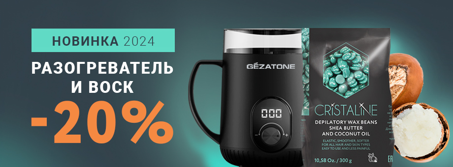 Только до конца месяца дарим скидку 20% на новинку 2024 года – разогреватель для воска и парафина WD919 Gezatone + самый универсальный и удобный пленочный воск CRISTALINE с маслом ши, который подходит для депиляции любого типа волоса на любых частях тела. Ваша выгода при покупке набора = 540 рублей!