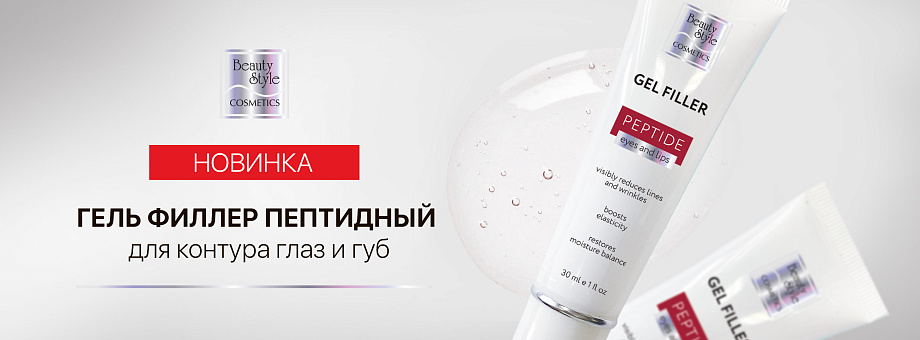 Новый пептидный гель с эффектом филлера Beauty Style разработан специально для ухода за специфической областью вокруг глаз и губ. Он содержит высокий процент гиалуроната натрия, который полностью восполняет потребность кожи во влаге, экстракт хвоща с высокими антиоксидантными и сосудоукрепляющими свойствами, который уменьшает отечность и выраженность темных кругов, а также витамин Е.
