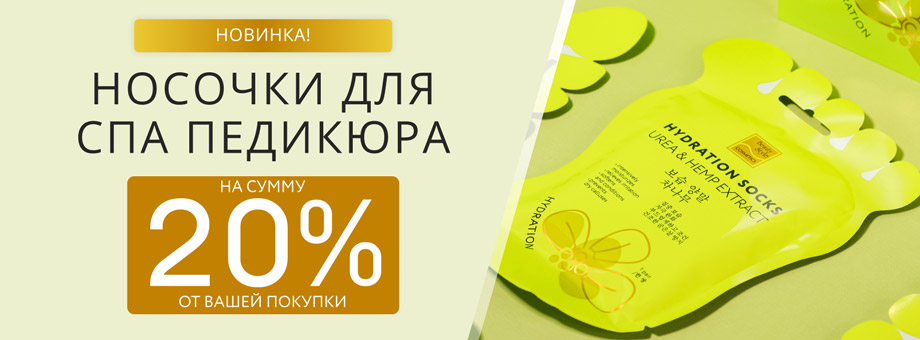 Не пропустите возможность оценить новинку! Делайте свои привычные заказы — и выбирайте педикюрные носочки на сумму 20% от их стоимости.