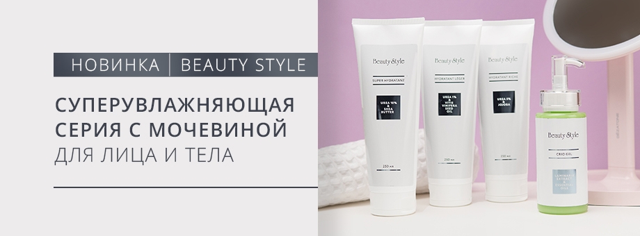 Beauty Style представляет новую линейку препаратов с мочевиной – мощного гидратирующего и кератолитического агента. Клинически доказано ее способность увлажнять и удерживать воду, поддерживать текучесть рогового слоя и его целостность. А при концентрациях от 10% и выше возрастают смягчающие и кератолитические свойства мочевины.