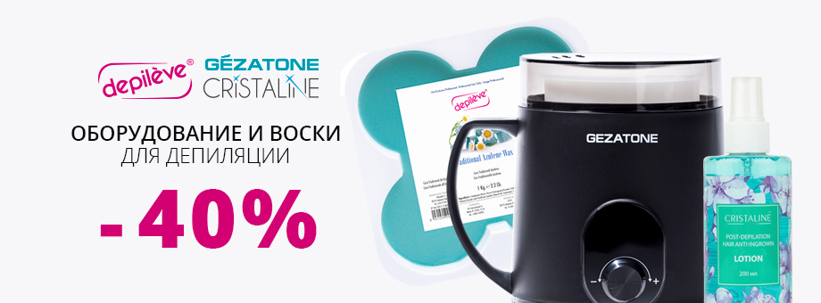 Прямо сейчас заказывайте лучшие воски, косметику и оборудование для депиляции от DEPILEVE, CRISTALINE и GEZATONE со скидками до 40%. Присоединяйтесь к горячему сезону депиляции!