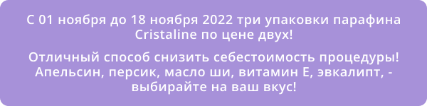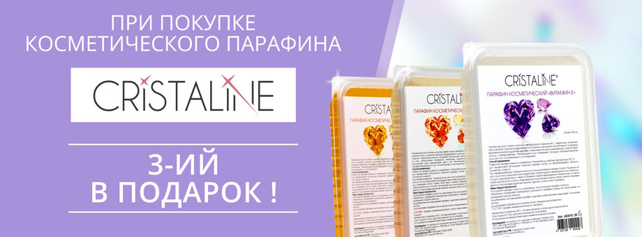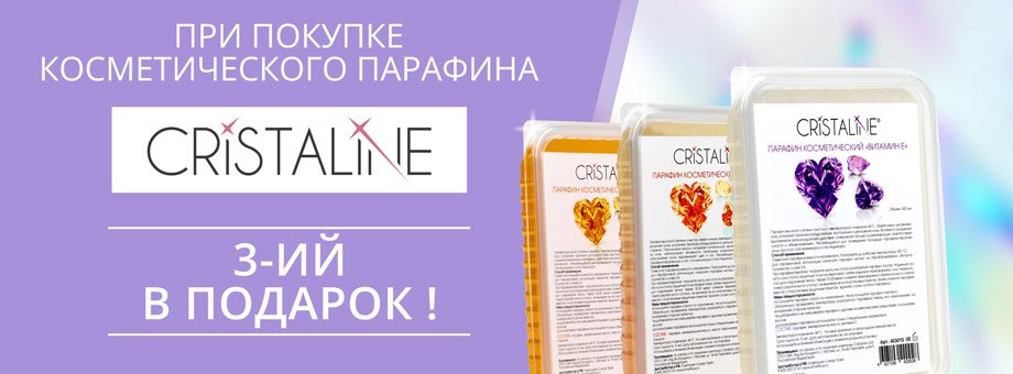 Какой бы вид парафина вы не выбрали, вы непременно насладитесь замечательными результатами. А с парафинами Cristaline еще и сократите затраты, ведь в ноябре при покупке 2 упаковок парафина, вы получаете третью в подарок!