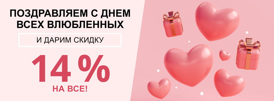 Поздравляем с Днем святого Валентина и дарим скидку 14% на ВСЕ!