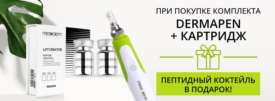 При покупке комплекта DERMAPEN + картридж - ПЕПТИДНЫЙ КОКТЕЙЛЬ В ПОДАРОК!