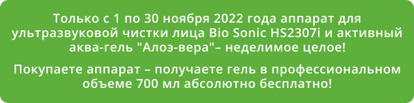 Если вы хотите купить портативный УЗ аппарат или заменить старый - обратите внимание на Bio Sonic HS2307i Gezatone! Этот аппарат только и ждёт, чтобы стать вашим, чтобы проводить процедуры комплексного аппаратного ухода: пилинг, фонофорез и микромассаж. Прибор имеет регистрационное удостоверение РосЗдравНадзора, прошел все испытания, доказал свою надежность и эффективность. Работать с HS2307i комфортно, легко и просто, а покупать – выгодно, ведь вместе с ним вы получаете в подарок аква гель "Алоэ вера"!