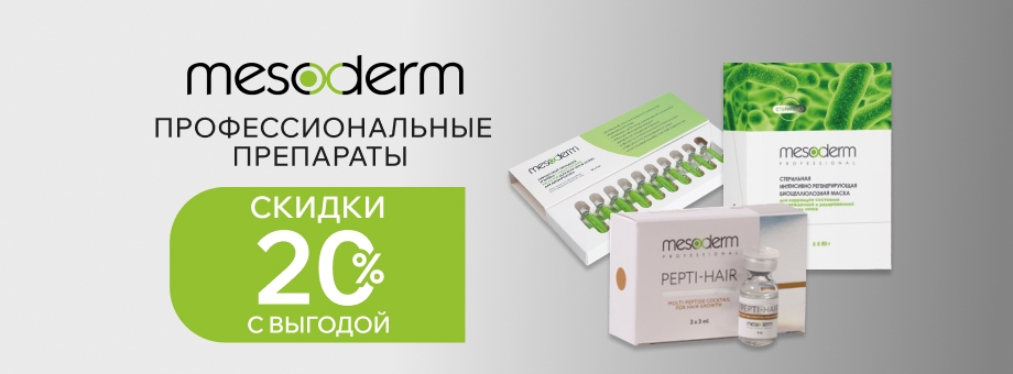 Прямо сейчас успевайте купить пептидные мезопрепараты и биоревитализанты от испанского бренда с многолетней историей Mesoderm со скидками до 20%!