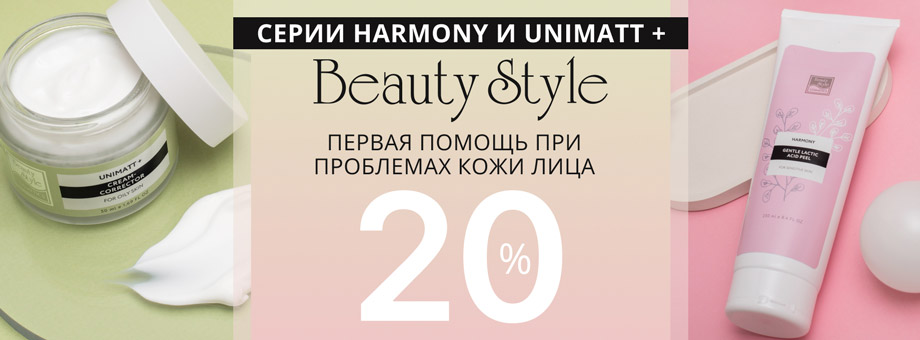 Серии Harmony и UNIMATT + Beauty Style: первая помощь при проблемах кожи лица со скидкой 20%!