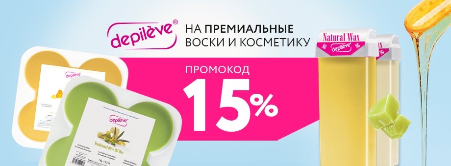 Дарим скидку 15% на самые качественные воски и косметику для депляции DEPILEVE! При заказе на сайте введите промокод или назовите его вашему менеджеру.