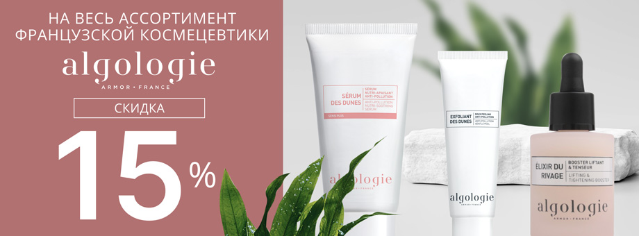 Скидка 15% на ВЕСЬ ассортимент французской космецевтики Algologie