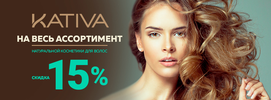 Скидка 15% на весь ассортимент натуральной косметики для волос Kativa