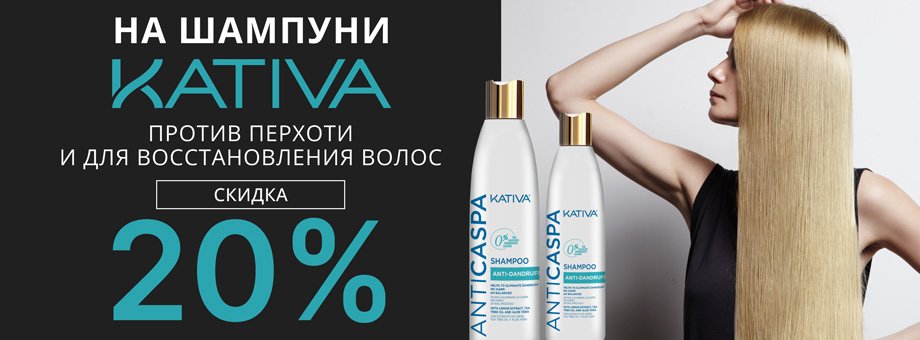 Скидка 20% на шампуни Kativa против перхоти и для восстановления волос