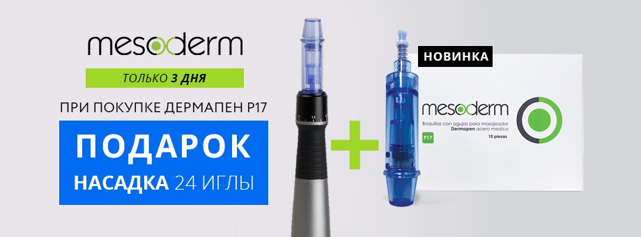 Только три дня! При покупке дермапена P17 MESODERM дарим упаковку картриджей на 24 иглы (10 шт.) стоимостью 2 390 рублей. Успевайте сделать заказ, количество подарочных упаковок ограничено!