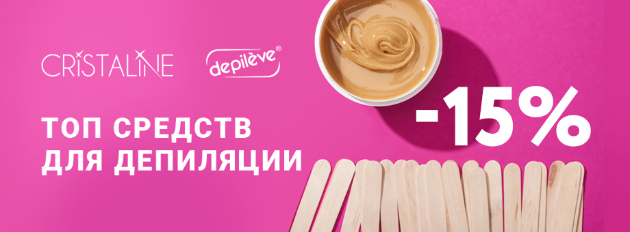 Дарим скидку 15% на лучшие препараты для удаления волос от ведущих брендов депиляции CRISTALINE (США) и DEPILEVE (Европа). 100% оригиналы для работы с волосками и кожей любого типа. Только до конца месяца.