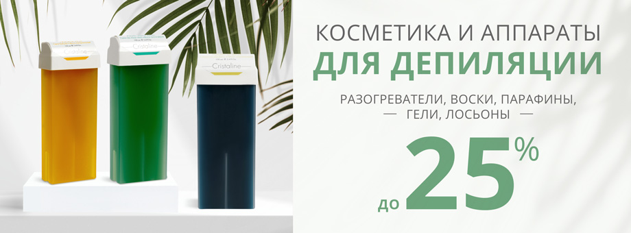Ваша скидка до 25%! Косметика и аппараты для депиляции: разогреватели, воски, парафины, гели, лосьоны