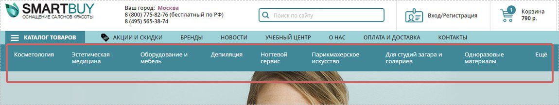 1. Перейдите в Каталог товаров, воспользовавшись меню навигации по каталогу.