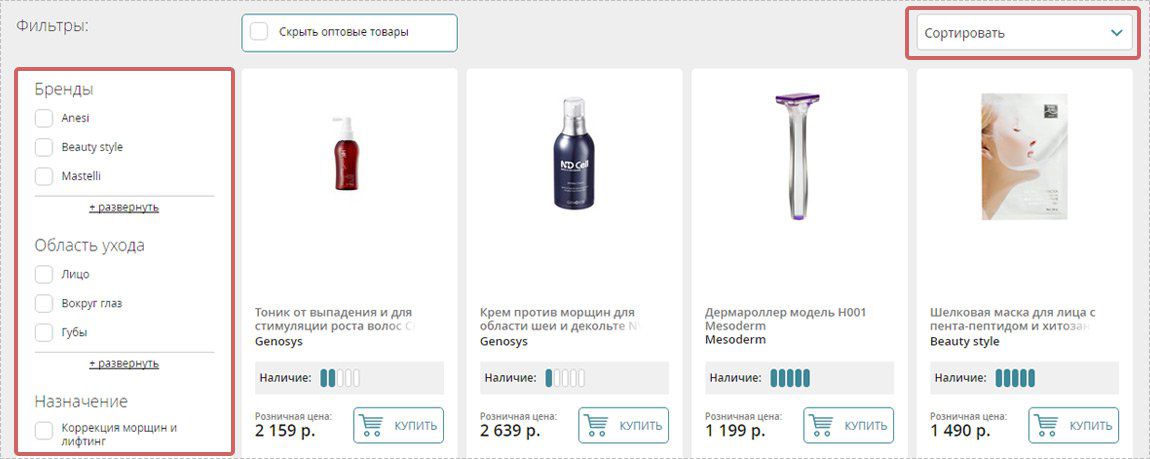 В Каталоге товаров Вы можете быстро отобрать нужные товары, воспользовавшись Фильтрами, а также применить удобную для Вас сортировку товаров.