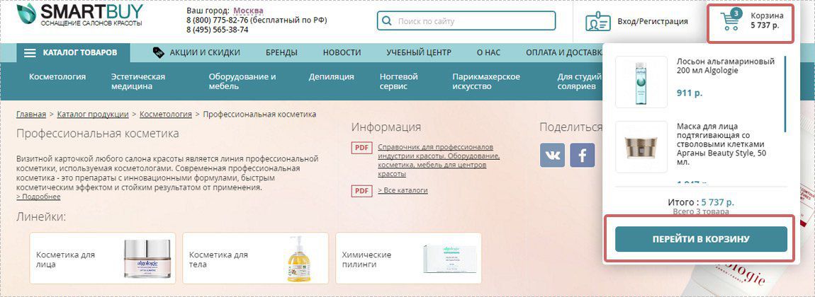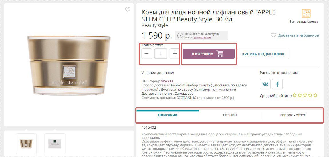 Для покупки: выберите необходимое количество товаров и нажмите “В Корзину”.