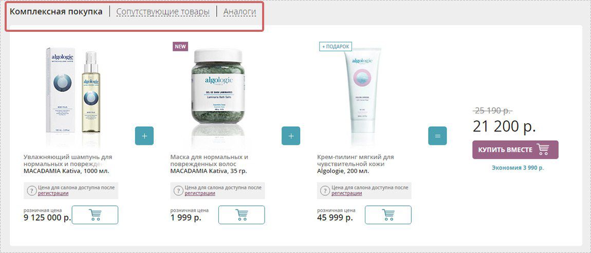 В нижней части карточки товара Вы можете ознакомиться с лучшим комплектом к просматриваемому товару, ознакомиться со списком Сопутствующих товаров и Аналогв. Для этого кликайте на соответствующем ярлычке в нижней части страницы.