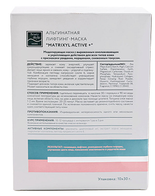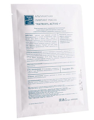 Сочетая взаимодополняющие активы, альгинатная лифтинг маска «Матриксил актив плюс» Бьюти Стайл преображает лицо после 1 сеанса.