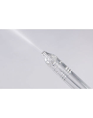 Благодаря мощному встроенному компрессору и манипуле с тремя микро соплами, газожидкостный поток из микро капель разгоняется до сверхзвуковых скоростей. Приближение насадки к поверхности кожи приводит к нарастанию давления, и жидкость проникает глубоко в кожу через волосяные фолликулы, протоки потовых и сальных желез.