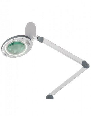 Лампа-лупа разработана из высококачественных прочных материалов с учётом актуальных потребностей современных косметологов. Пять режимов интенсивности света и 60 светодиодов новейшего поколения позволяют настроить освещение во время процедур по индивидуальным предпочтениям специалиста. Удобная ручка помогает регулировать положение прибора и сохраняет стекло линзы чистым. Мягкий пластик из резины высокого качества делает прибор приятным на ощупь. Супертонкое стекло обладает высокой четкостью, что помогает максимально подробно осмотреть поверхность кожных покровов. Модель снабжена линзой увеличенного диаметра (15 см), благодаря чему специалист может осмотреть большую площадь интересующей его зоны без оптического искажения.