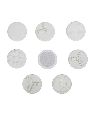 Сменные насадки различной формы предназначены для проведения различных видов массажного воздействия. В комплектации предусмотрена дополнительная тканевая мембрана для особо чувствительных клиентов и зон, которая подходит для любой манипулы.  А также насадка-пемза для СПА процедур и пилинга кожи стоп. Дополнительный глубокий прогрев усиливает скорость обменных процессов, кровообращения и дренажа, релаксирует и стимулирует детокс.
