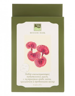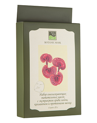 Ботаническая питательная маска с экстрактом гриба лин-чи, коллагеном и протеинами шелка Botanical Mask Beauty Style, 6 шт.