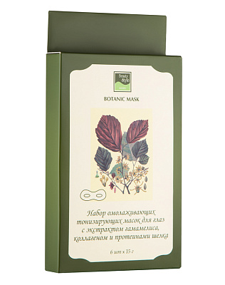 Ботаническая тонизирующая маска для глаз с экстрактом гамамелиса, коллагеном и протеинами шелка Botanical Mask Beauty Style, 6 шт.