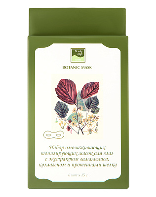 Beauty style Ботаническая тонизирующая маска для глаз с экстрактом гамамелиса, коллагеном и протеинами шелка Botanical Mask Beauty Style, 6 шт.* 4501310