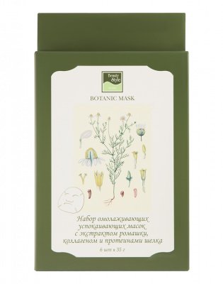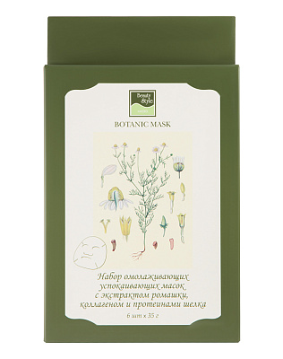 Ботаническая успокаивающая маска с экстрактом ромашки, коллагеном и протеинами шелка Botanical Mask Beauty Style, 6 шт.
