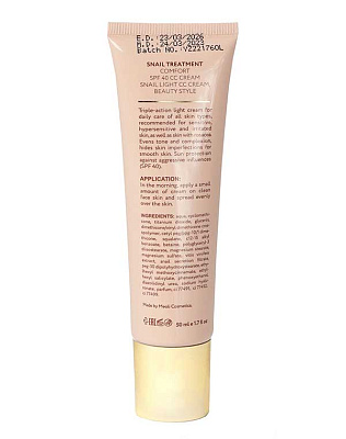 Универсальный препарат для ежедневного ухода, тонирования кожи с фотопротекторным действием. Муцин, экстракт красного винограда и гиалуроновая кислота обеспечивают оптимальную гидратацию и антиоксидантную защиту в течение всего дня, SPF 40 предотвращает УФ повреждения, минеральные пигменты выравнивают тон лица, маскируя несовершенства кожи.