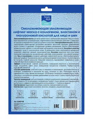Beauty style Двухфазная лифтинг-маска с коллагеном, эластином и гиалуроновой кислотой + гель с коллагеном Beauty Style, 10 шт.* 4501108K