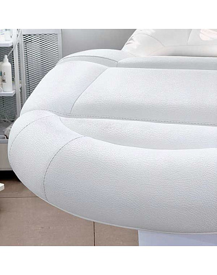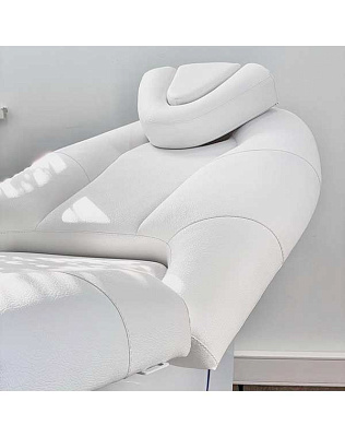 • Особенности корпуса эстетично скрывают каркас кресла, при этом дают возможность косметологу спокойно подходить к клиенту сбоку во время работы по телу, удобно располагаться в изголовье, выполняя процедуры по лицу.