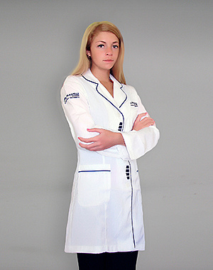 Удобный и практичный халат для косметолога с цветным логотипом Mastelli.