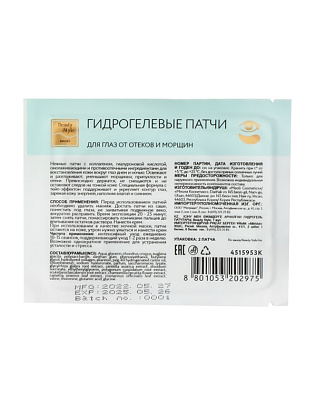 Гидрогелевые патчи для глаз от отеков и морщин Beauty Style