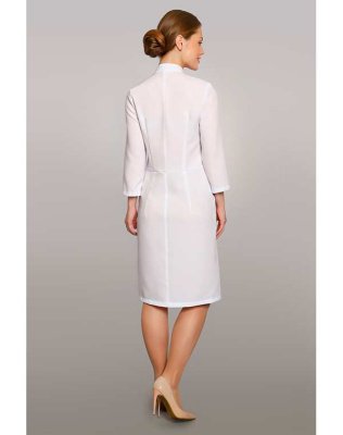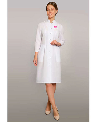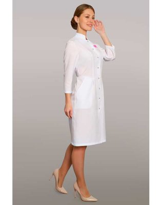 Классический медицинский халат для косметолога на кнопках с двумя карманами и воротником-стойкой. Элегантный дизайн позволяет подчеркнуть фигуру, в то же время не сковывает движений. Рукав ¾ удобен для работы, предотвращает попадание препаратов на ткань. Аккуратные швы не натирают кожу, необычный крой с вытачками передает одновременно женственность и строгость. Универсальная длина чуть выше колена позволяет надевать этот халат самостоятельно или комплектовать его с медицинскими брюками прямого кроя.