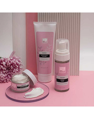 Очищающий препарат с воздушной текстурой серии «Гармония» от Бьюти Стайл. В состав мусса входят мицеллы в качестве дополнительного компонента для усиления очищающего действия. Средство обеспечивает качественное устранение макияжа и загрязнений, не нарушая гидролипидную мантию. Не нарушает защитный барьер, способствует сохранению оптимального уровня влаги, предотвращает развитие нежелательных реакций. Рекомендуется для ежедневного ухода за тонкой, сухой, реактивной и стрессовой кожей. Препарат не оставляет ощущения липкой пленки, экономично расходуется.