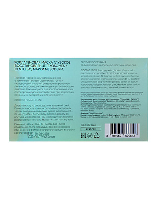 Характеристики коллагеновой маски «Exosomes + Centella» от MESODERM